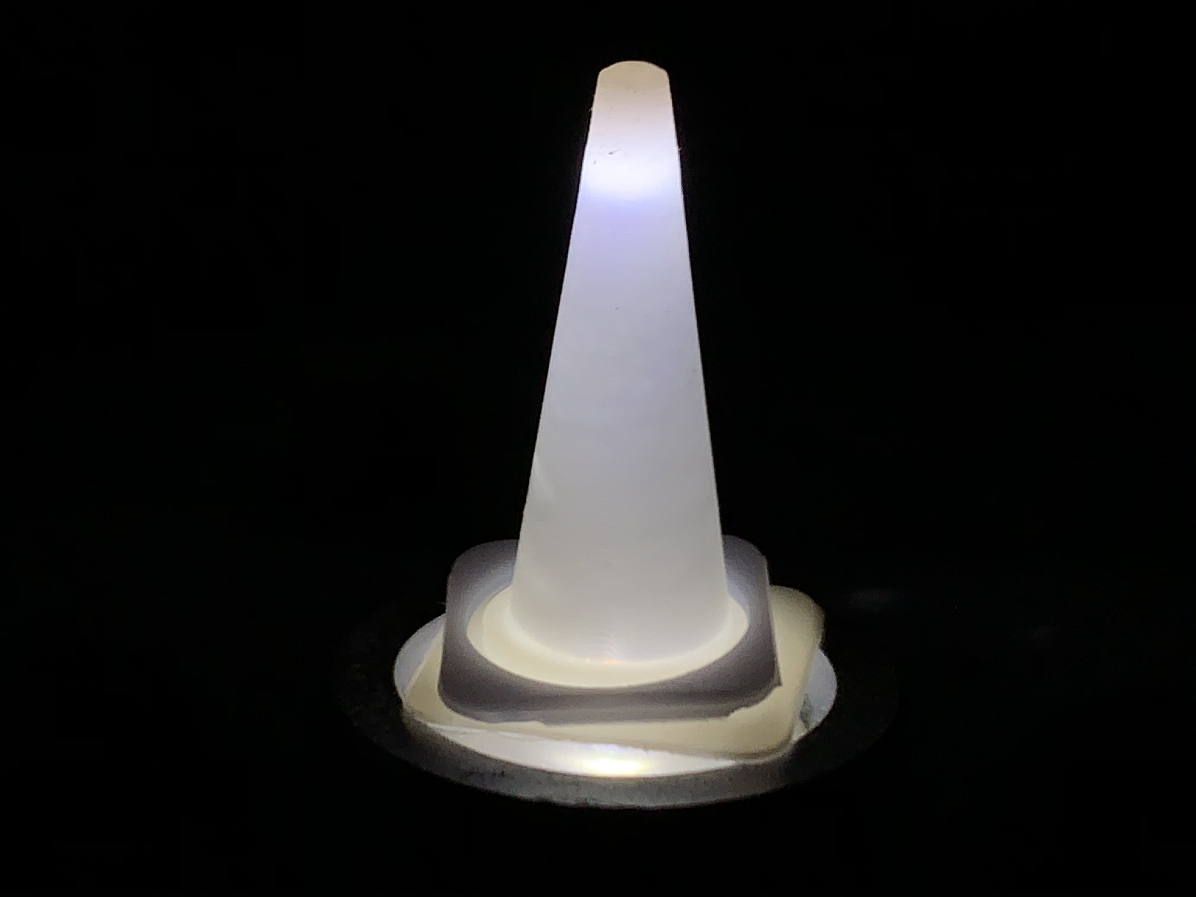 肉厚を薄めに設定して作られているため、3Dプリントレジンの硬さを利用して「割る」事で、朽ちつつもなお役目を果たそうとしているコーンの再現も可能。