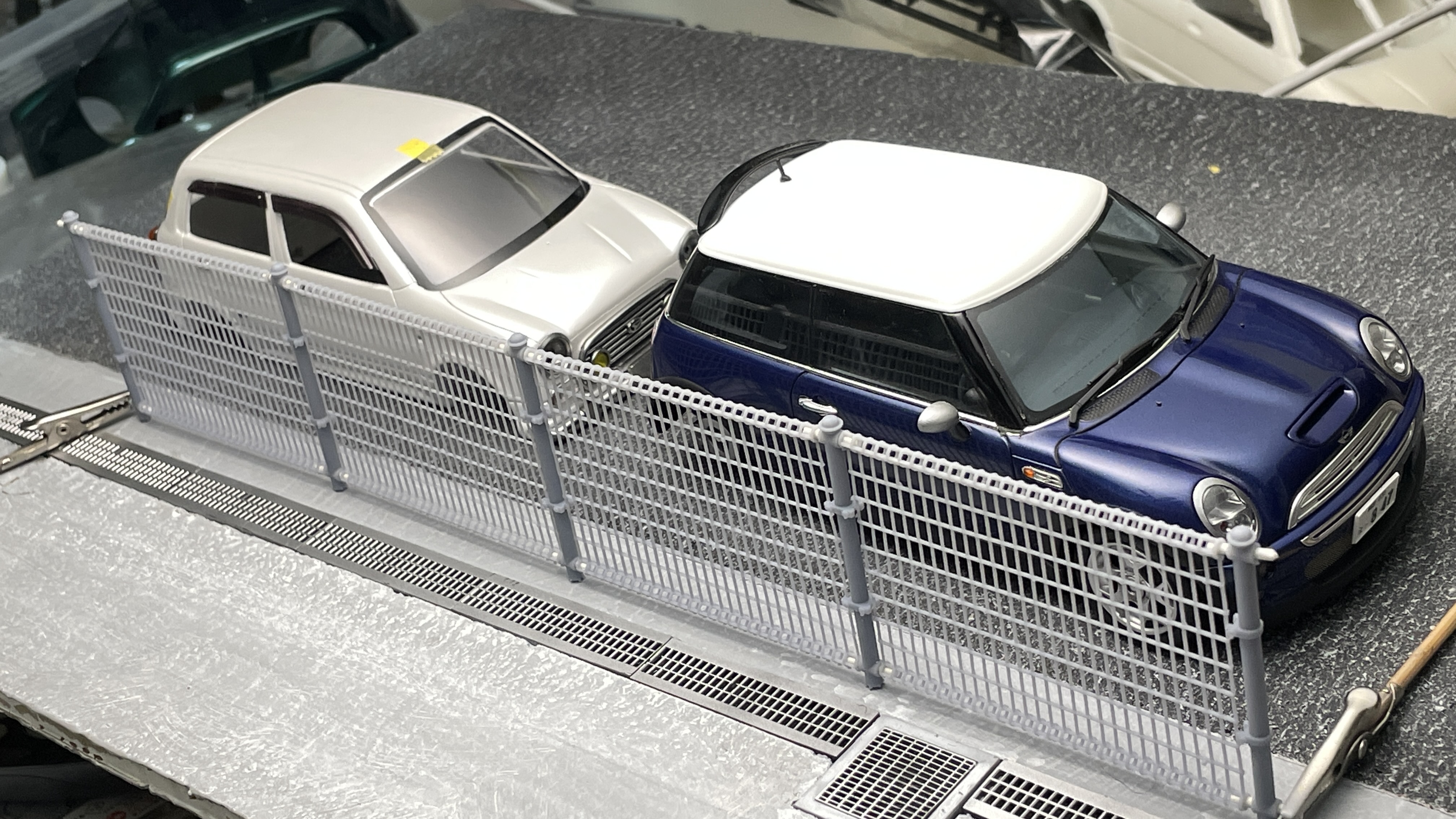 コンビニ駐車場や住宅まで、見かける事が多いメッシュ組みタイプのフェンス。