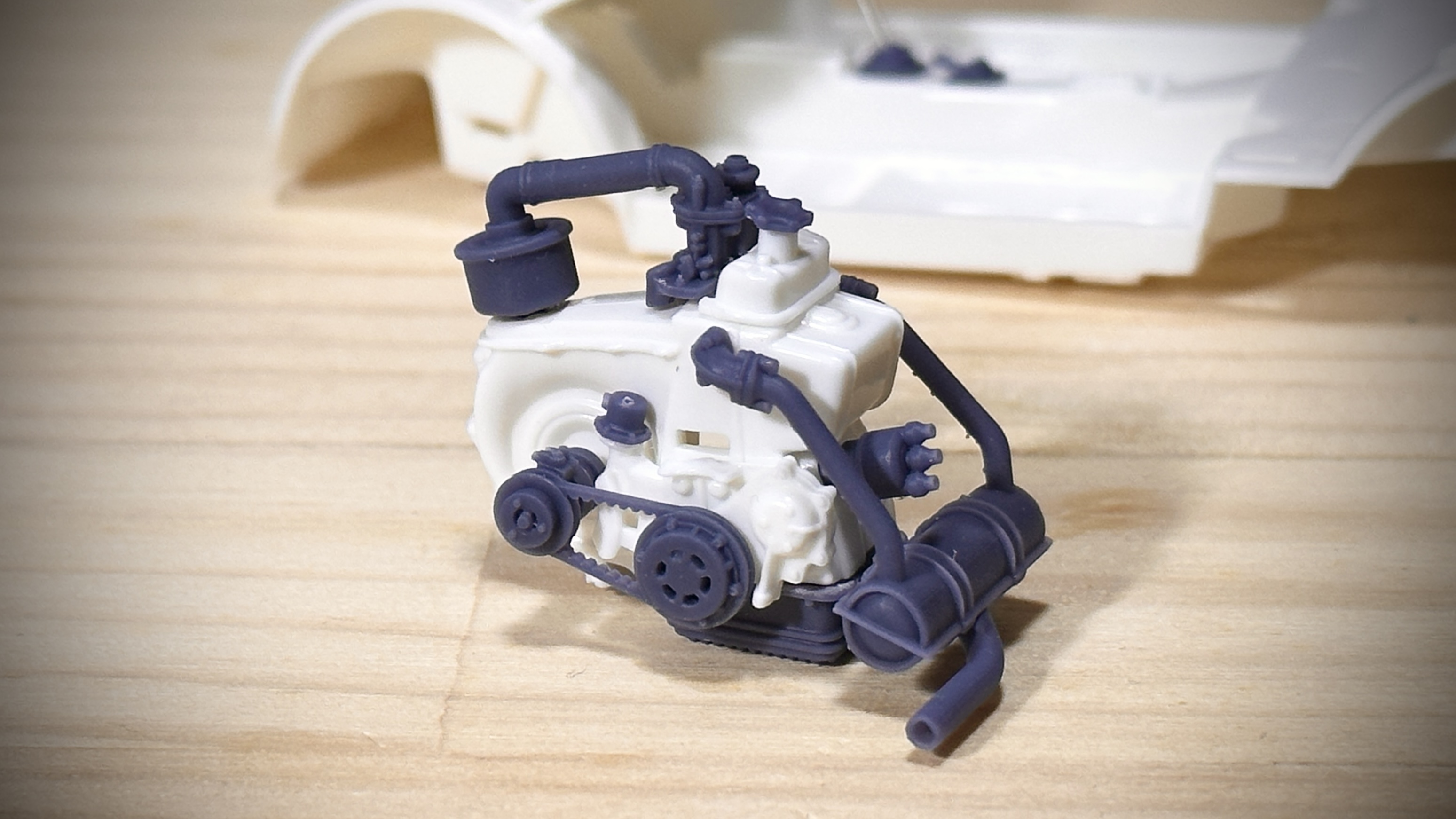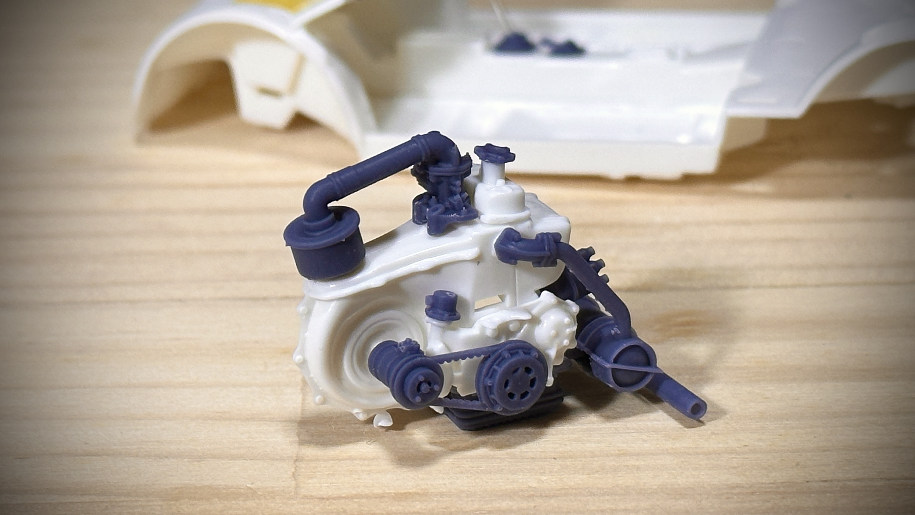 キットで省略されているモールドをシャープに再現したオルタネータや各種配管部品を精密感をアップさせて再現。