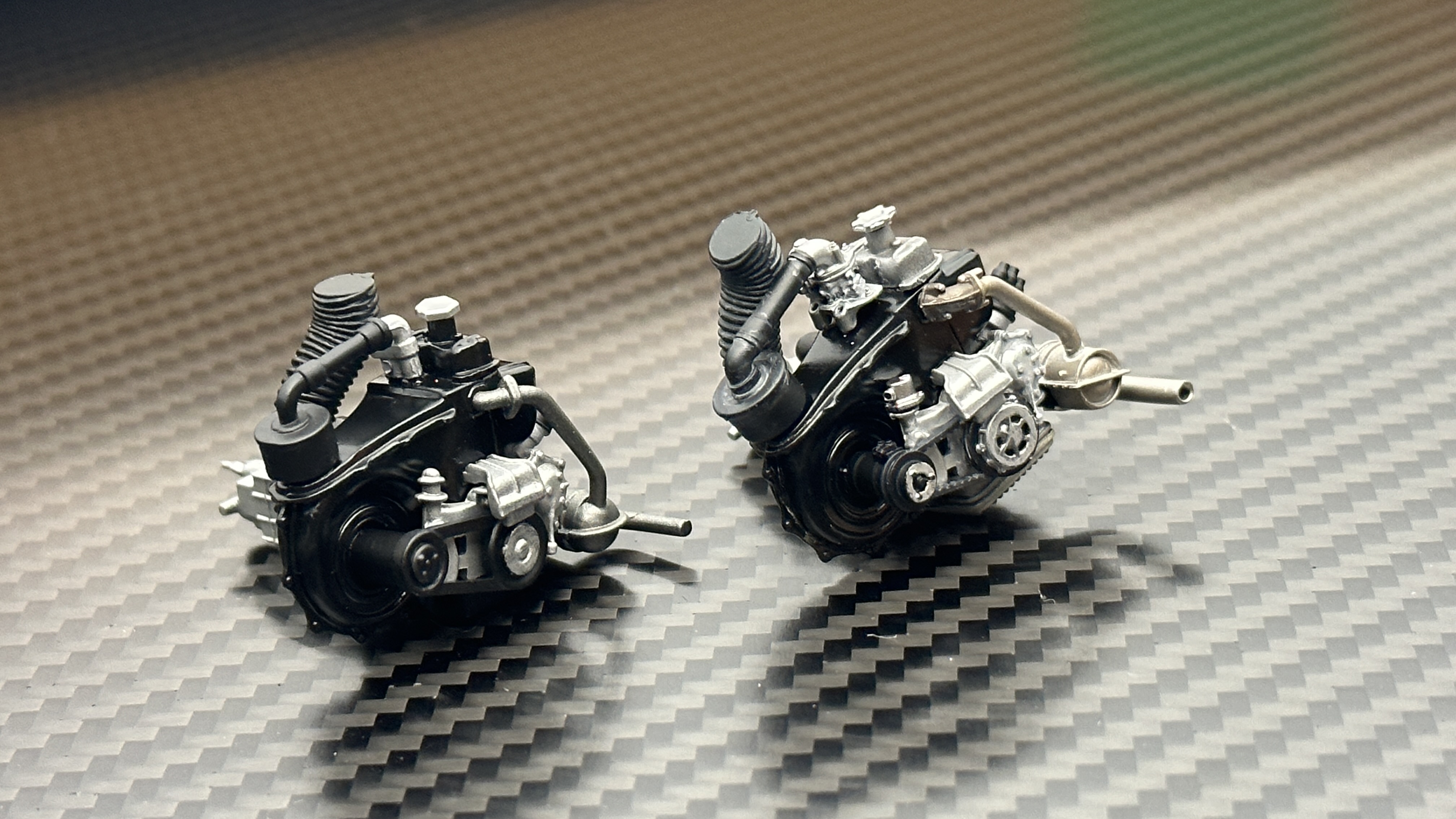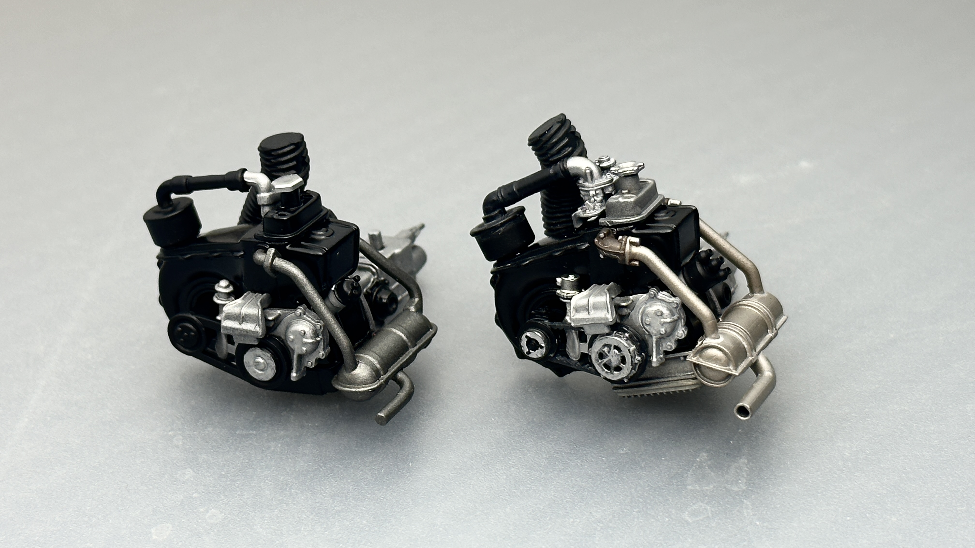 (塗装写真左がキットパーツ、右がディティールアップパーツ組み込み状態です。)