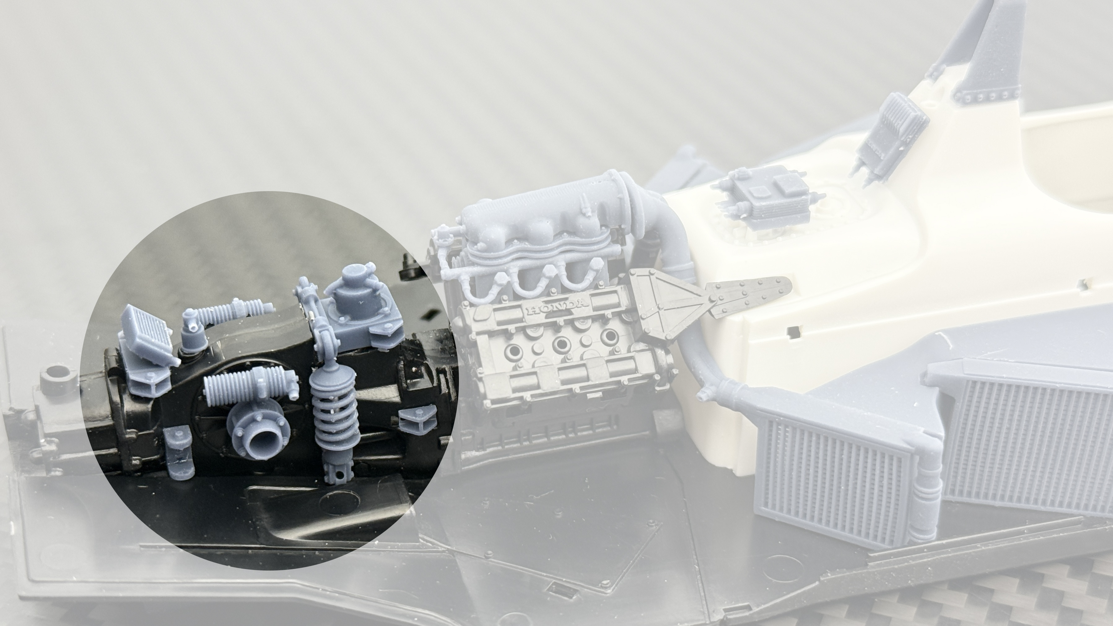 T社製ウィリアムズFW11のサスペンション周辺のディティールアップ改造を手軽に行えるパーツセットです。